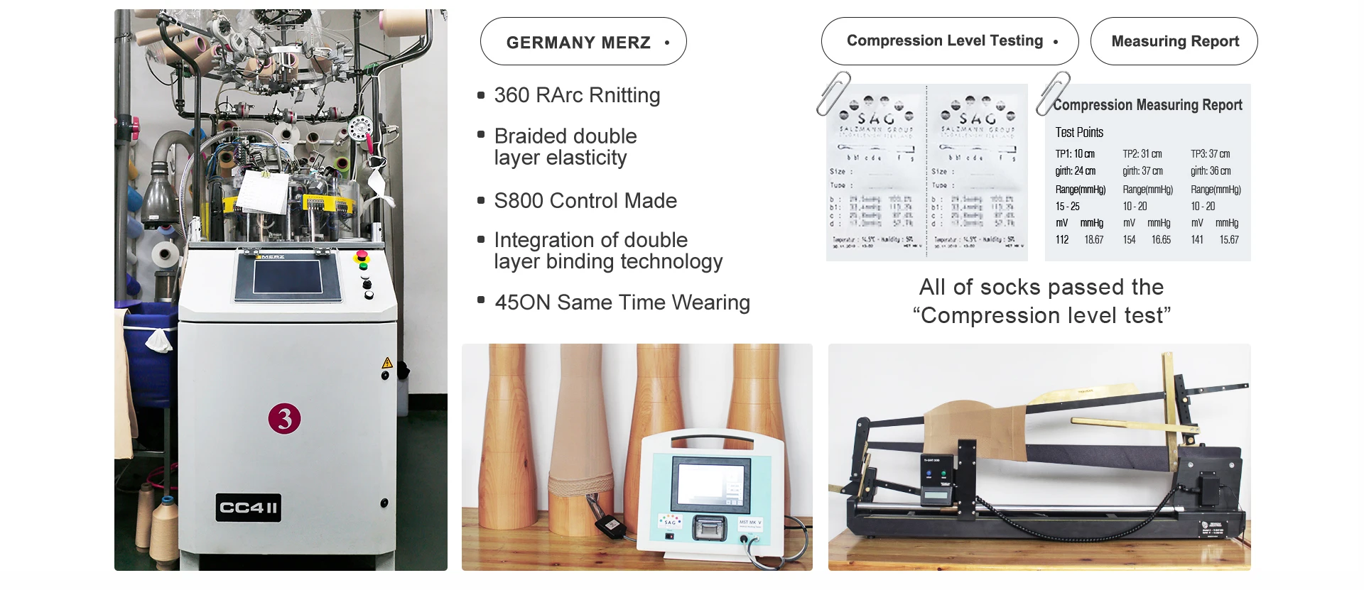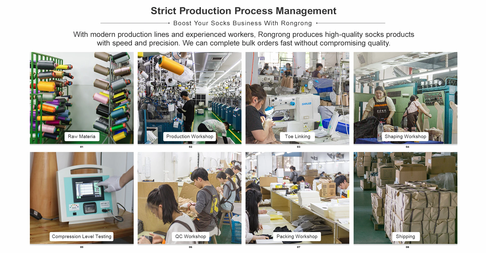 Zhejiang Rong Rong Hosiery Co., Ltd. was founded in 1997. We are manufacture over ten years of production experience, with all lines of producing stockings, pantyhose, socks and medical compression stockings. Our factory has over 180 knitting machine from Italian Lonati, over 70 sewing machines,and compression machines from Germany, measuring machine from Switzerl and. Also, we have more than 200 skilled workers.